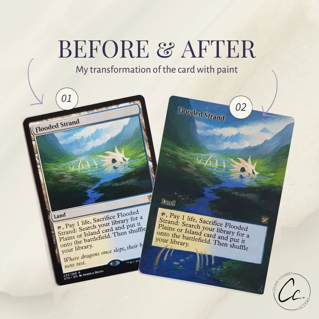 🌄 I specialize in landscape painting, which I can paint on your cards (basic MTG lands, Command Tower, dual lands, or shock lands...).